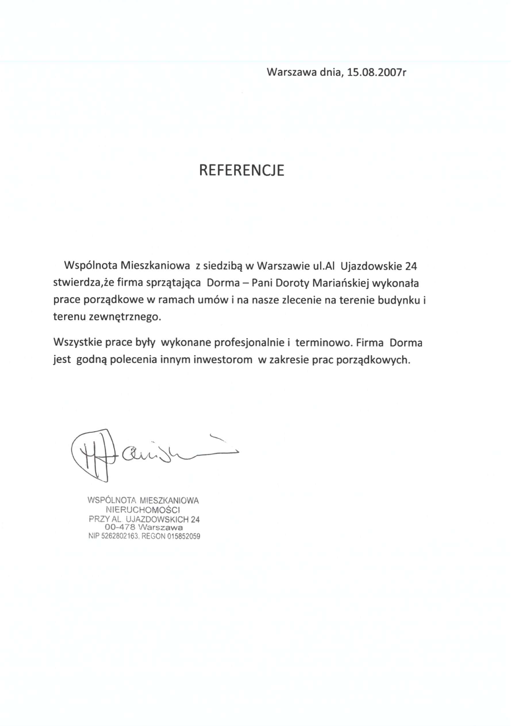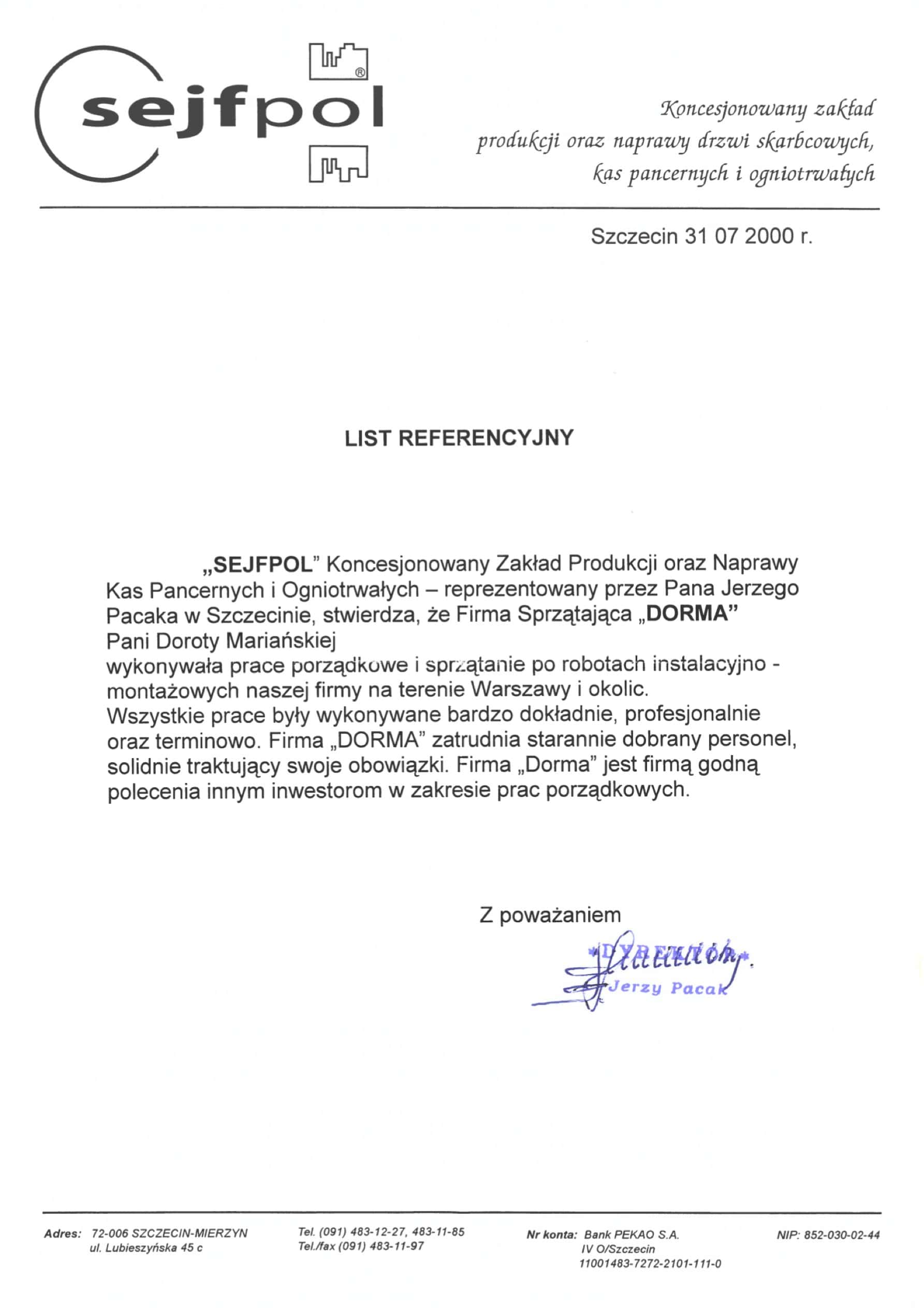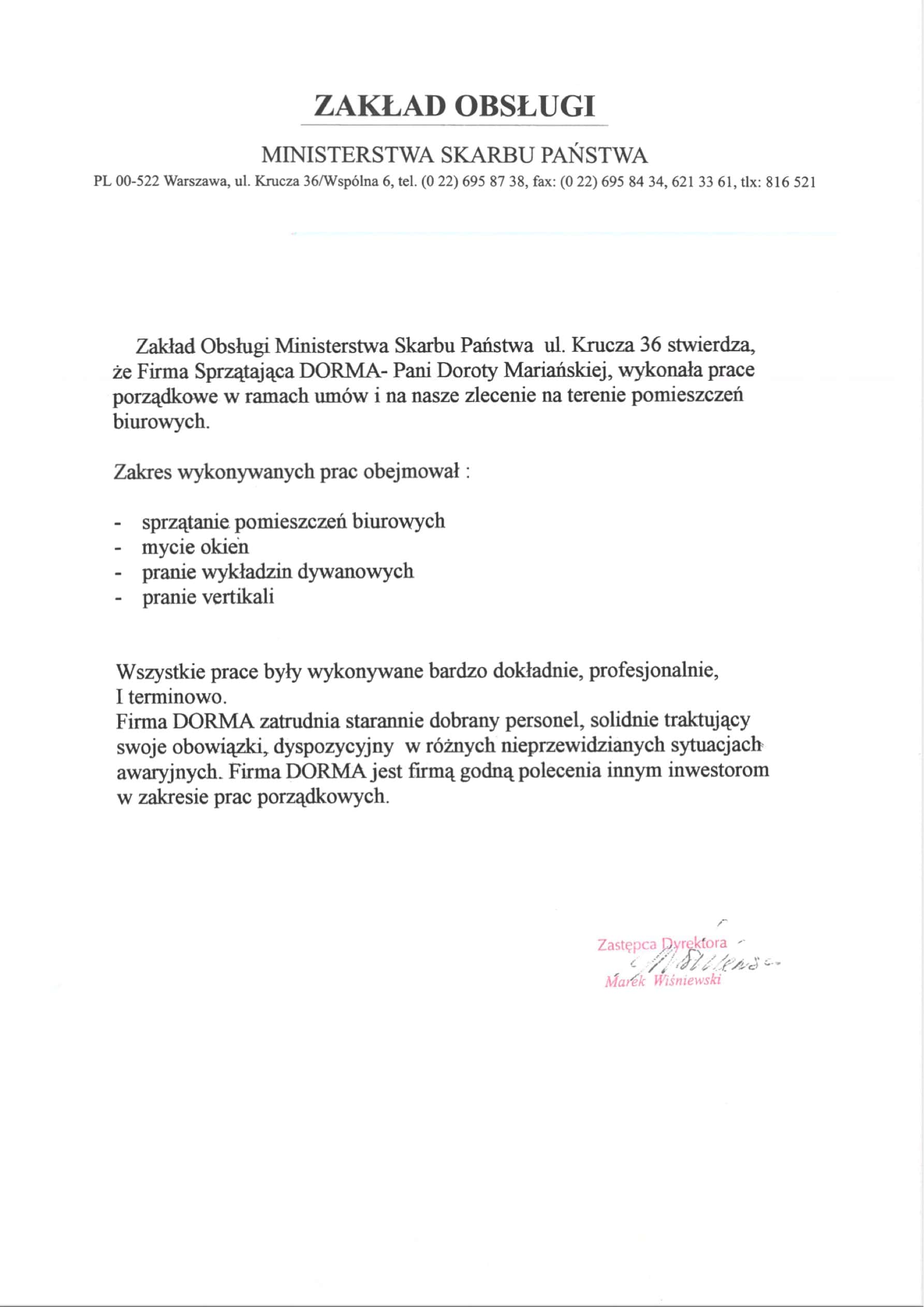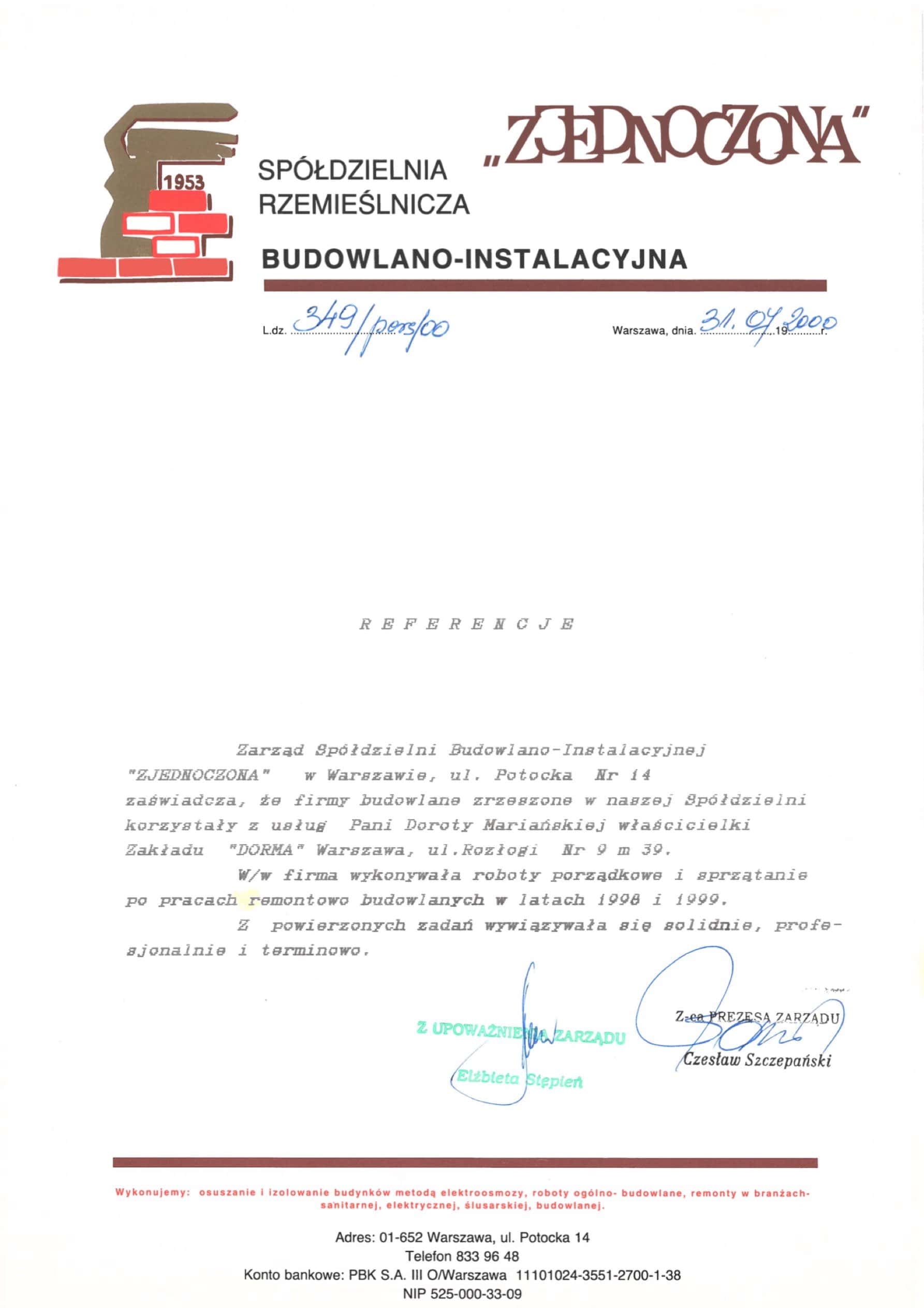 DORMA powstała w 1996 roku. Dzięki sumienności, dokładności oraz terminowości wyrafinowanych prac zyskaliśmy szacunek wielu przedsiębiorstw oraz instytucji budżetowych. Referencji firmie udzieliły m.in. następujące podmioty: